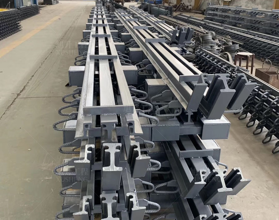 對于伸縮縫產(chǎn)品安裝就位和焊接。當伸縮縫產(chǎn)品是在工廠制造并組裝,在產(chǎn)品安裝前應根據(jù)安裝溫度調(diào)整好伸縮縫裝置間隙,用吊車或人工將伸縮縫裝置放入槽口內(nèi),注意前后左右位置要準確。遇有受阻的預埋筋可適當扳彎,然后借助鋁合金直尺由中間向兩端調(diào)整伸縮縫裝置的頂面高度,直至頂面比路面低0-2mm(D80)、0-3mm(D160),這時如果伸縮縫裝置的縫隙寬度正好符合安裝溫度的要求,即可將預埋筋扳靠到較近的伸縮縫裝置錨環(huán)上進行焊接。