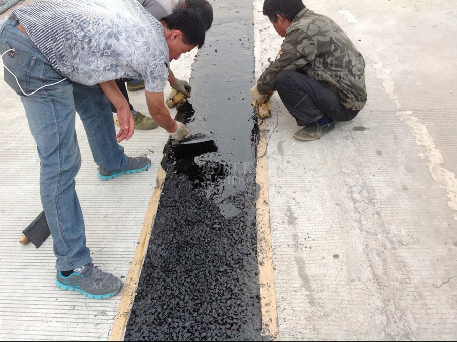 6、使用壽命長(zhǎng):嚴(yán)格按照工藝要求安裝的無(wú)縫伸縮縫粘接料,其壽命是一般改性瀝青路面的兩倍左右。