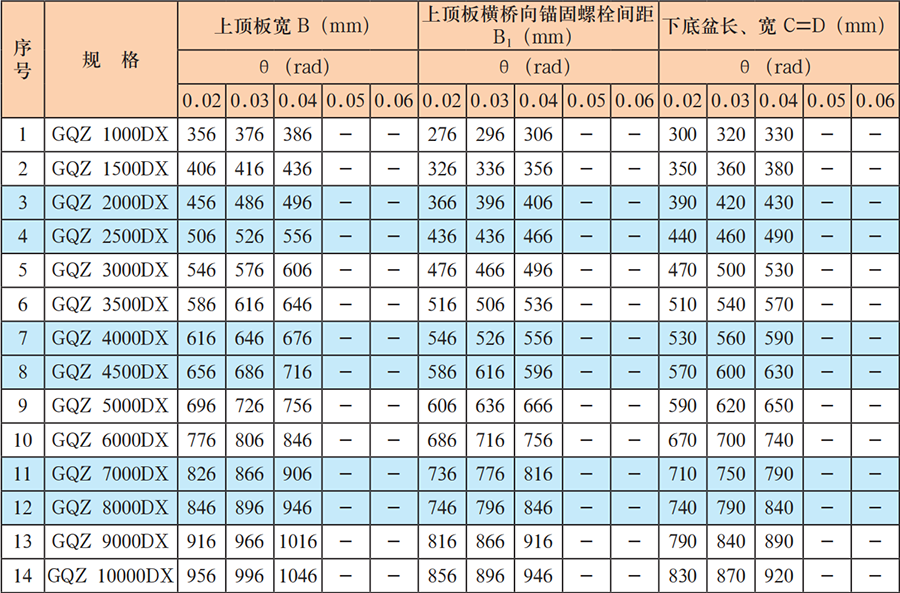 5.1 單向活動(dòng)支座 GQZ-DX 結(jié)構(gòu)示意圖見(jiàn)圖 1,其規(guī)格系列見(jiàn)表 1。