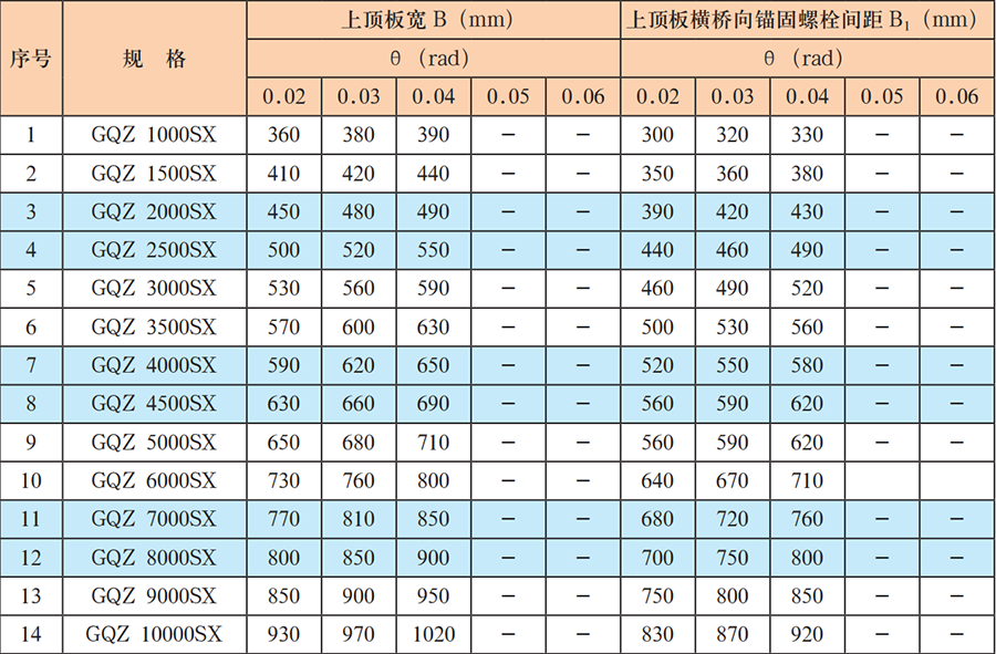 表 2 雙向活動(dòng)支座規(guī)格系列