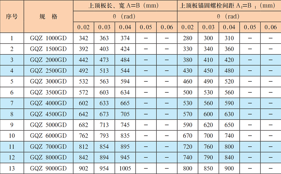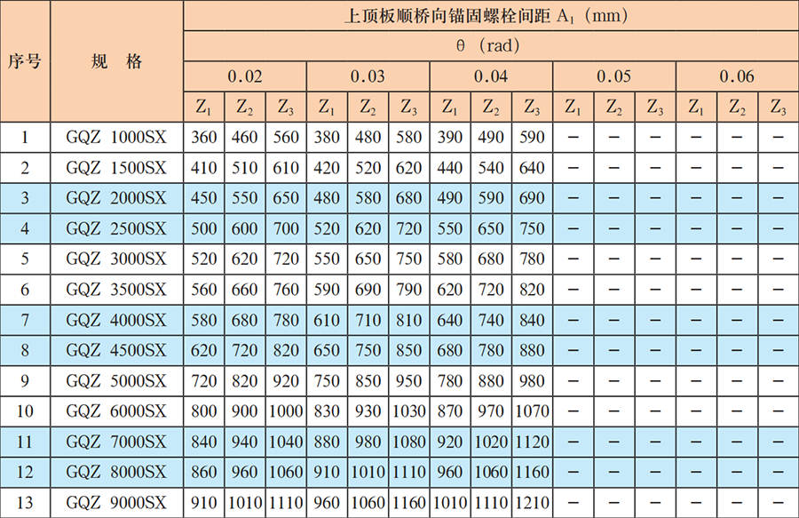 A1、B1——上頂板錨固螺栓間距,單位為毫米(mm)