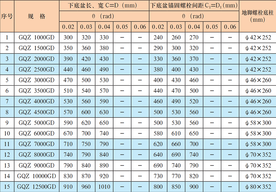 C1、D1——下底盆錨固螺栓間距,單位為毫米(mm)